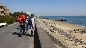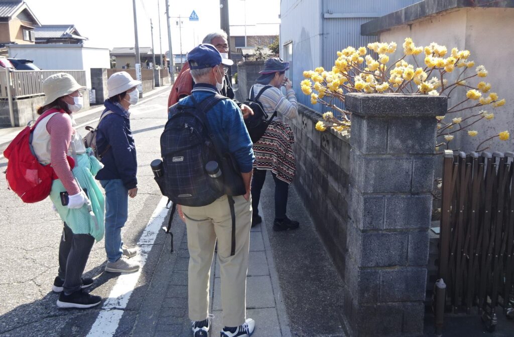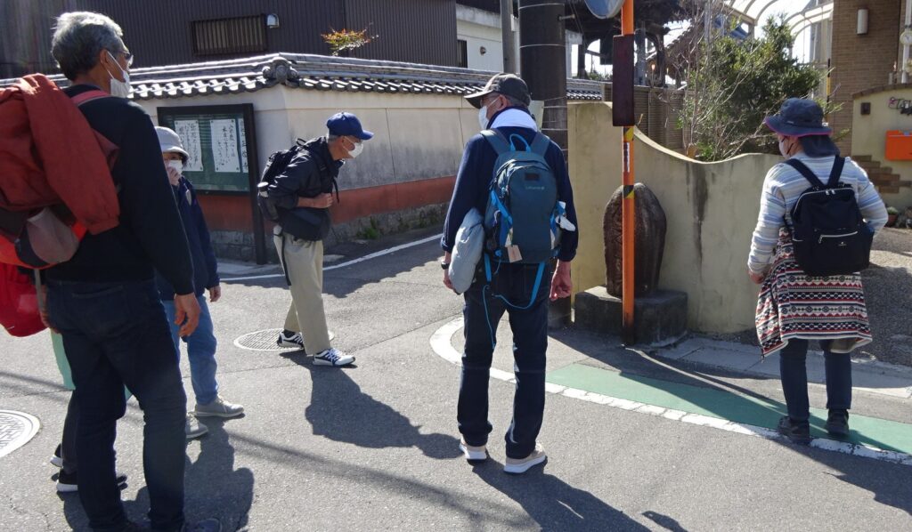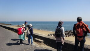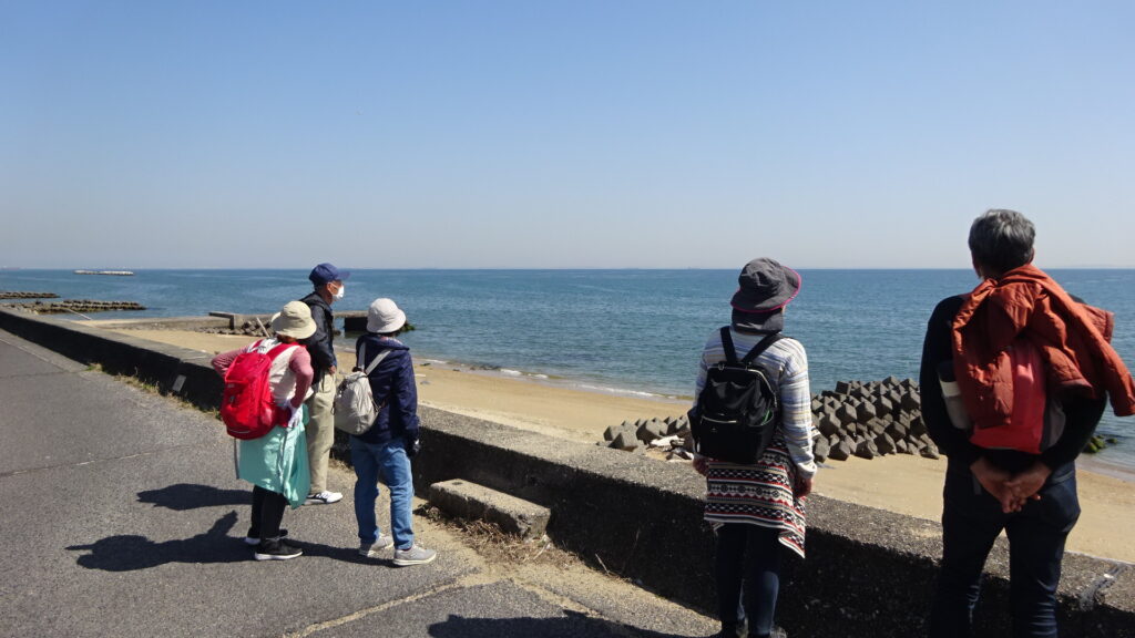 また街道に戻り伊勢街道を一路南へ、途中には春を実感出来る植物を確認したり、寺社仏閣にも立ち寄り、海岸べりも視察と変化にとんだウォーキングとなりました。