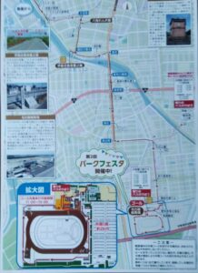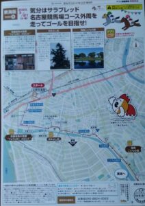 筏川に沿ってコースが設定されていて、家族でにぎわうこどもの国、伊能忠敬の足跡跡などを見学してゴールの名古屋競馬場に到着。
