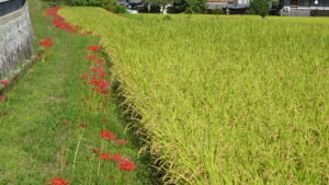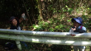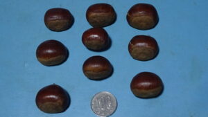近鉄御所駅からロープウェー登山駅までの約4kmはすべて上り坂、標高差約230mを歩いている途中に秋の味覚の栗の木を発見、たくさんの栗が落下していて急に栗拾い会を追加。
