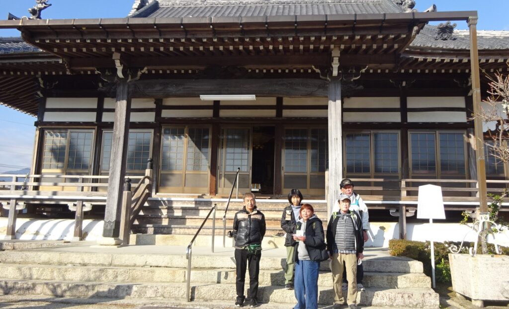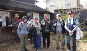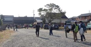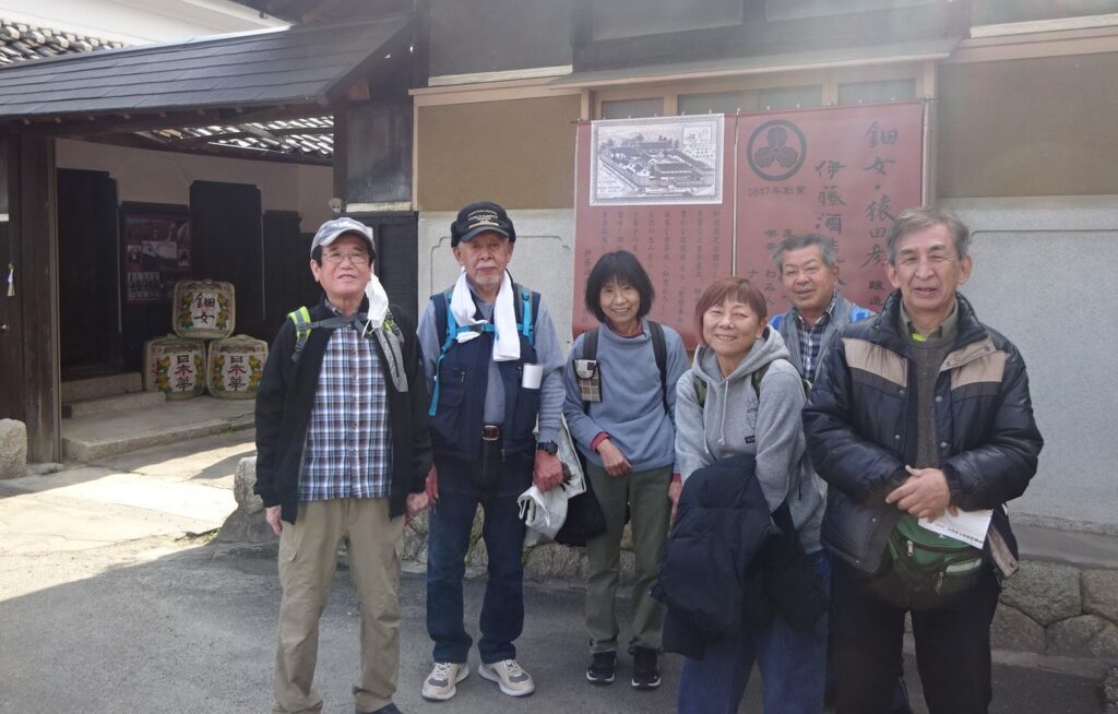 列の最後尾に並びウォーキングマップを受け取り、コースに沿って歩き、道中のお寺、菰野城跡を巡り、最後に本日のメインディッシュの伊藤酒造に到着しました。