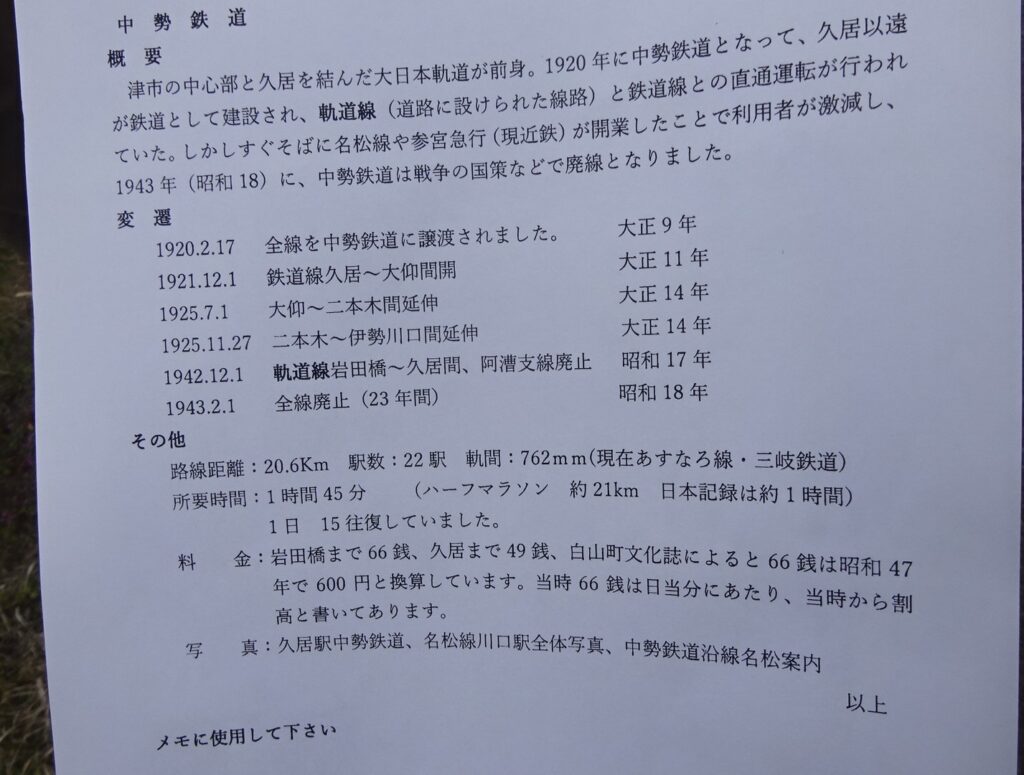 明治後期から大正時代に地元の足として利用されていました、狭軌の軽便鉄道と言われる気動車が走っていた中勢鉄道の廃線跡を3回に分けて歩くイベントの第一回目でした。