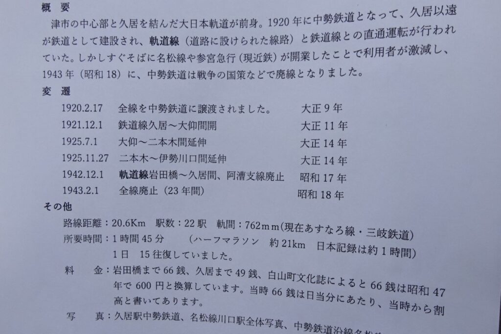 明治後期から大正時代に地元の足として利用されていました、狭軌の軽便鉄道と言われる気動車が走っていた中勢鉄道の廃線跡を3回に分けて歩くイベントの第一回目でした。
