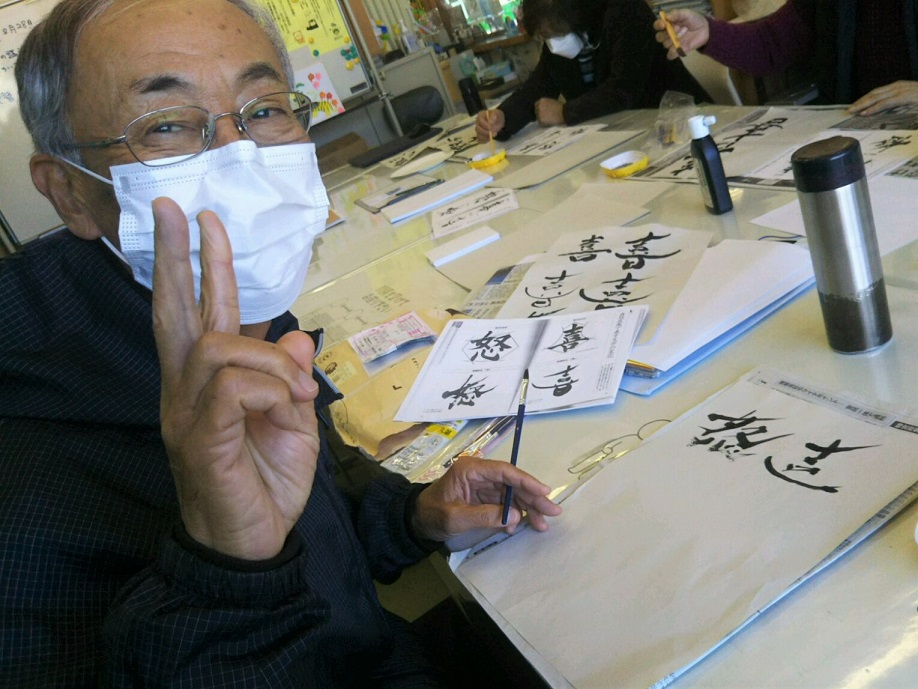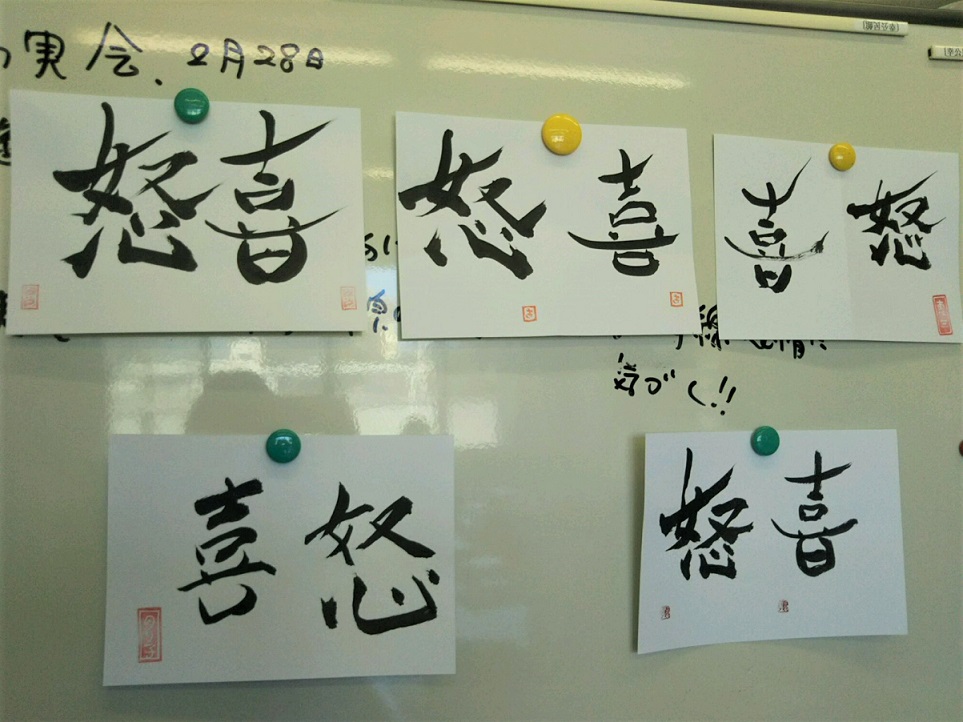 『喜・怒』で表情を表現することに挑戦しましたが、なかなか難しく、来月も再度挑戦!をお願いしました。  (大西紀子)