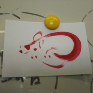 次に先生の来年の「ねずみ」デザインの絵文字を真似させて頂きました。色で描くとまたまた一段と引き立ちます。