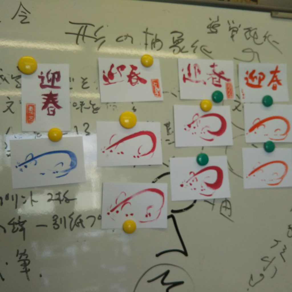 次に先生の来年の「ねずみ」デザインの絵文字を真似させて頂きました。色で描くとまたまた一段と引き立ちます。