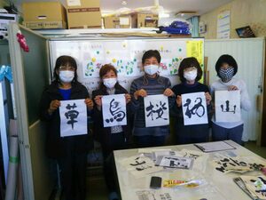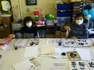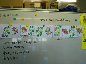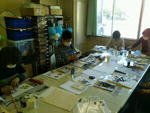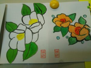 次に椿の絵の見本を頂き、真似て水彩絵の具で色を付けました。