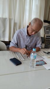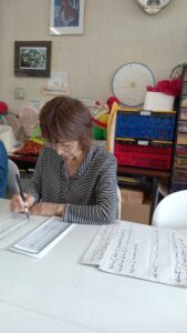 今日は5ヶ月間練習してきた「天の原ふりさきみればかすがなる みかさのやまにいでしつきかも」を短冊に清書しました。