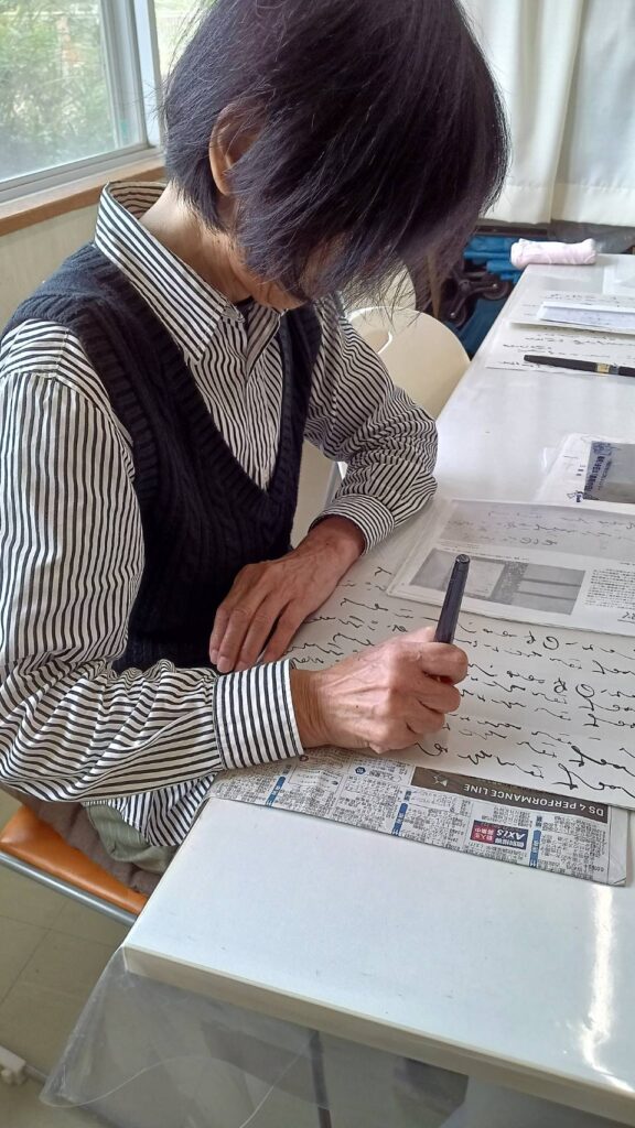 今日は5ヶ月間練習してきた「天の原ふりさきみればかすがなる みかさのやまにいでしつきかも」を短冊に清書しました。