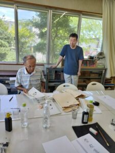 今月は大変暑さ厳しい中、2名の欠席者が有りましたが講師先生初め4名の会員で、暑さに負けず集中力高め作成に取り組みました。
