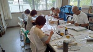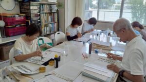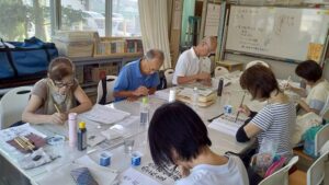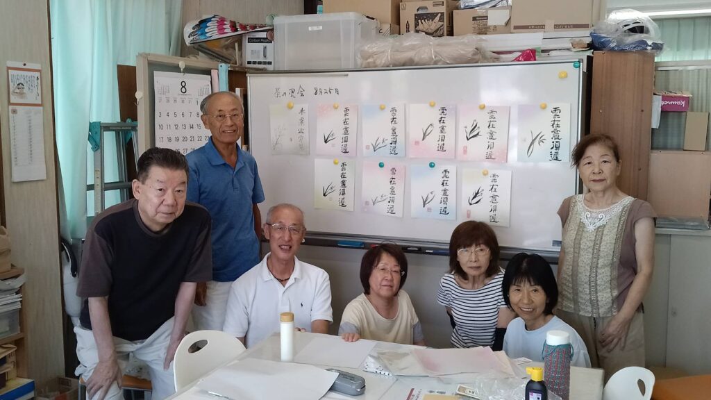 今月も変わらず暑さ厳しい中、1名の欠席者が有りましたが、講師先生初め7名の会員で暑さに負けず集中力を発しました。