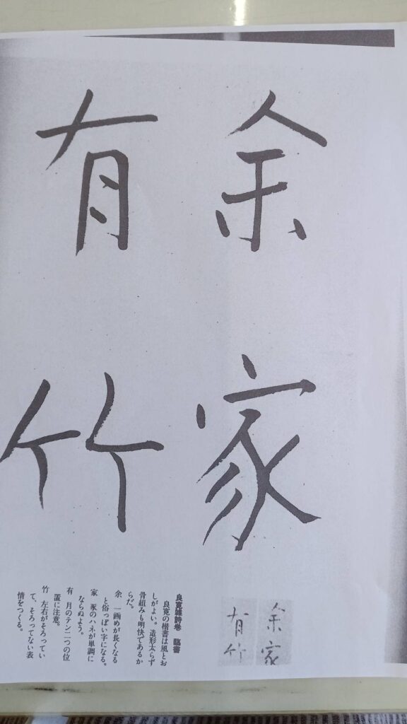 今日の課題は「余・家・有・竹」で良寛の書です。