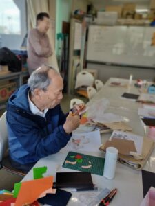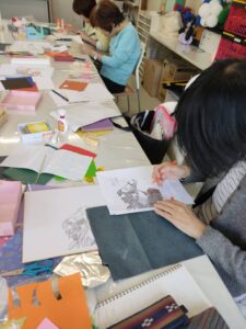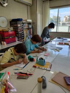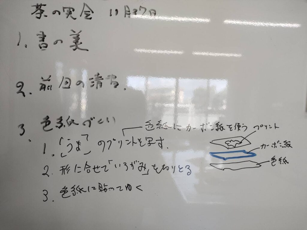 今月は 前回の清書をし、来年の干支、馬の貼り絵を作成にかかりました。