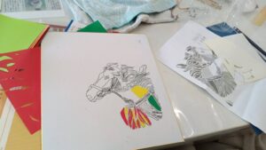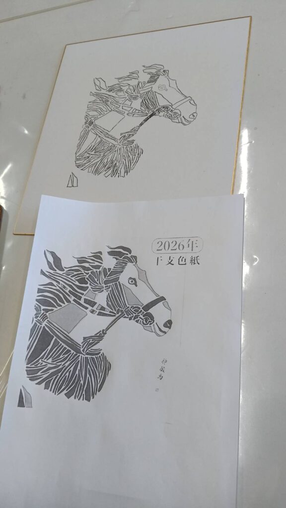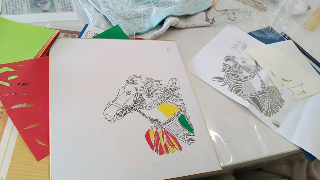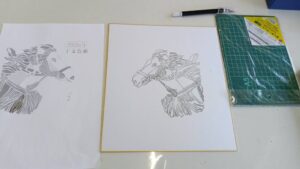 今月は書はお休みで干支(午)の色紙作りに入りました。