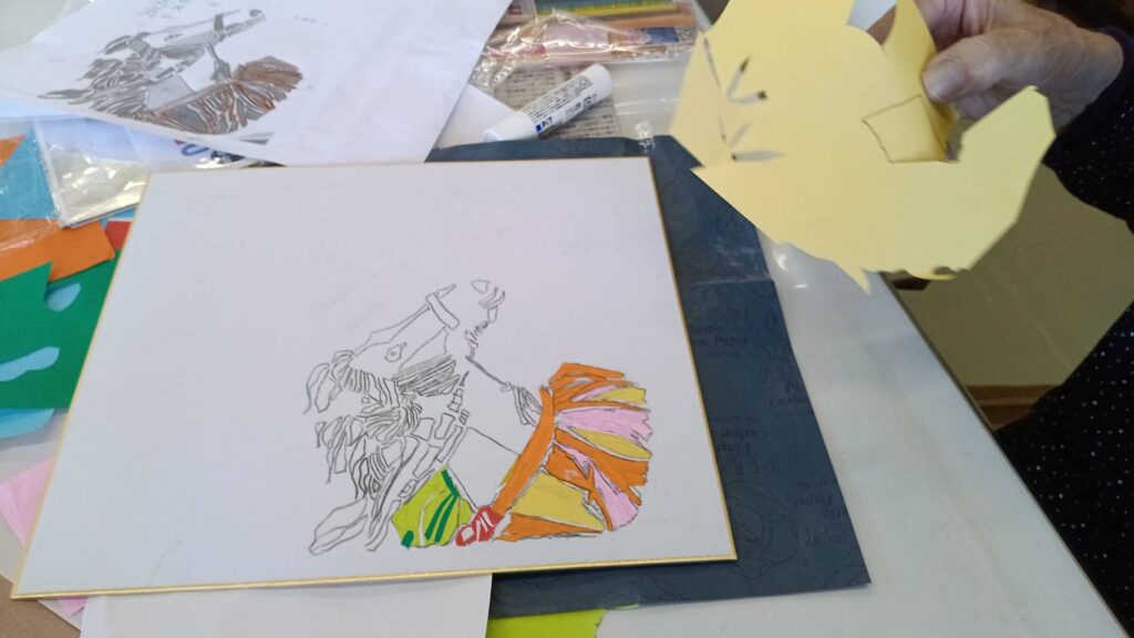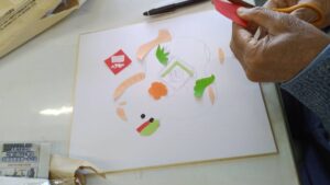- ①貼り絵(午の絵)の原紙を色紙に。