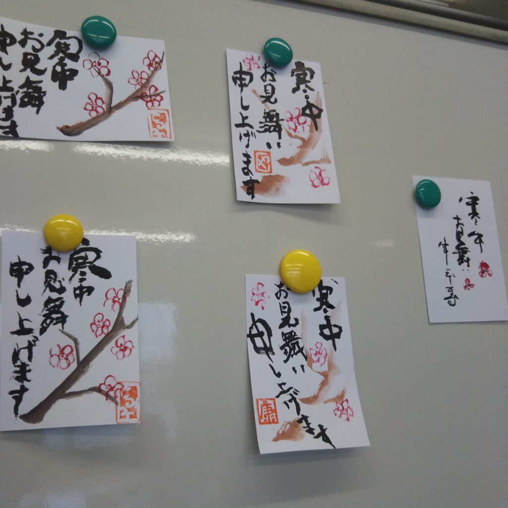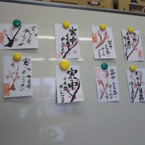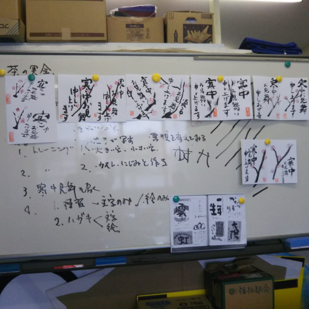 新年の初釜を終え、今日のレタリングは事務的な字、きれいな字でなく、字に味わいを求めました。