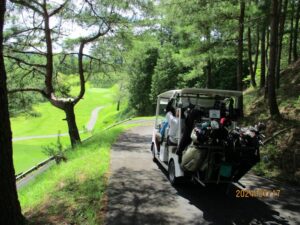 日中は32度Cを超える炎天下、1打毎に水分を摂り、日陰をさがしながらも息苦しさのためか、携帯酸素スプレーで酸素を補給する人も。何とか、全員が無事にプレイを終えました。