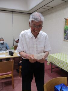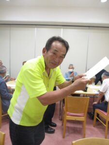 - ②幹事の渡邉さん(左端)から「熱中症にならないように・・」