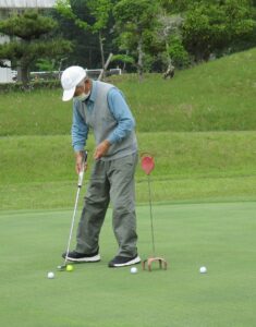 日中は真夏のような30度Cを超える気温と梅雨のような60%を超える湿度の中、身体中から吹き出す汗を拭いながら、熱中症対策として水分を補給しながらのラウンドになりました。