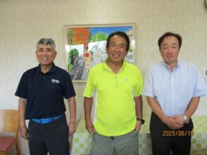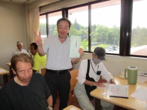 - ②幹事の山本さん(中央)から「くれぐれも熱中症対策を・・」