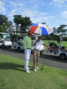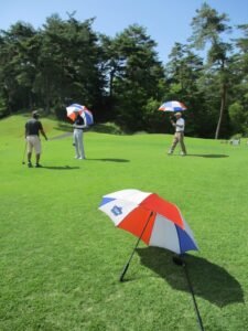 日中の最高気温は33度C を超え、あまりの暑さに冷房の効いたコース売店に立ち寄り、休憩しながらのプレイになりました。