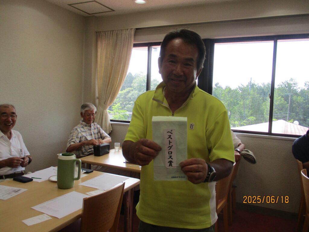 「アプローチが絶好調だった。次回も連続優勝を狙います!」と語ったハンディキャップ「0」の金田さんが、グロス77の好スコアで1年振りの優勝に輝きました。