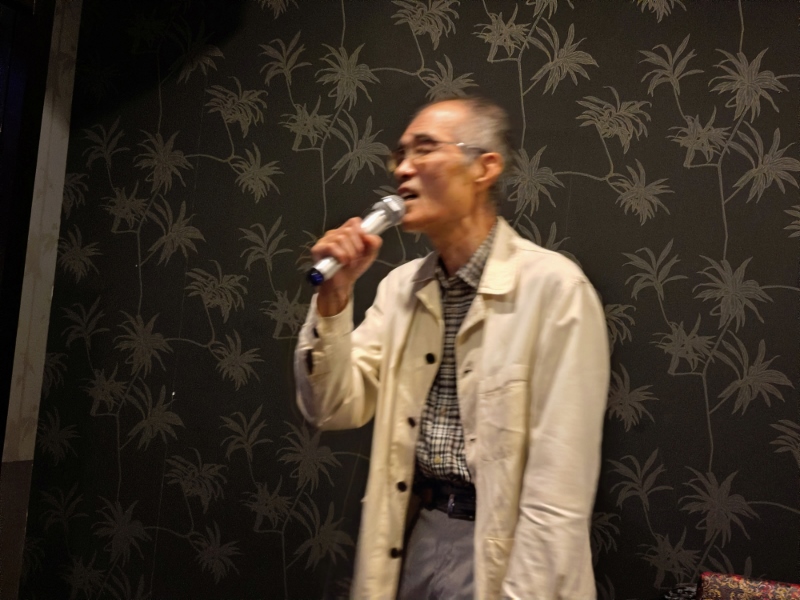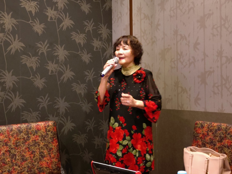 ご披露頂く歌も、綺麗な声で、体・腹から声を出し、健康的に且つ、笑いを込め楽しく、上手い、下手は別として一時を和やかに過しています。