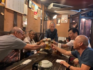開催10分前に1名参加、2度目の乾杯、飲んで、食って、おしゃべりして、「ビールお替わり」