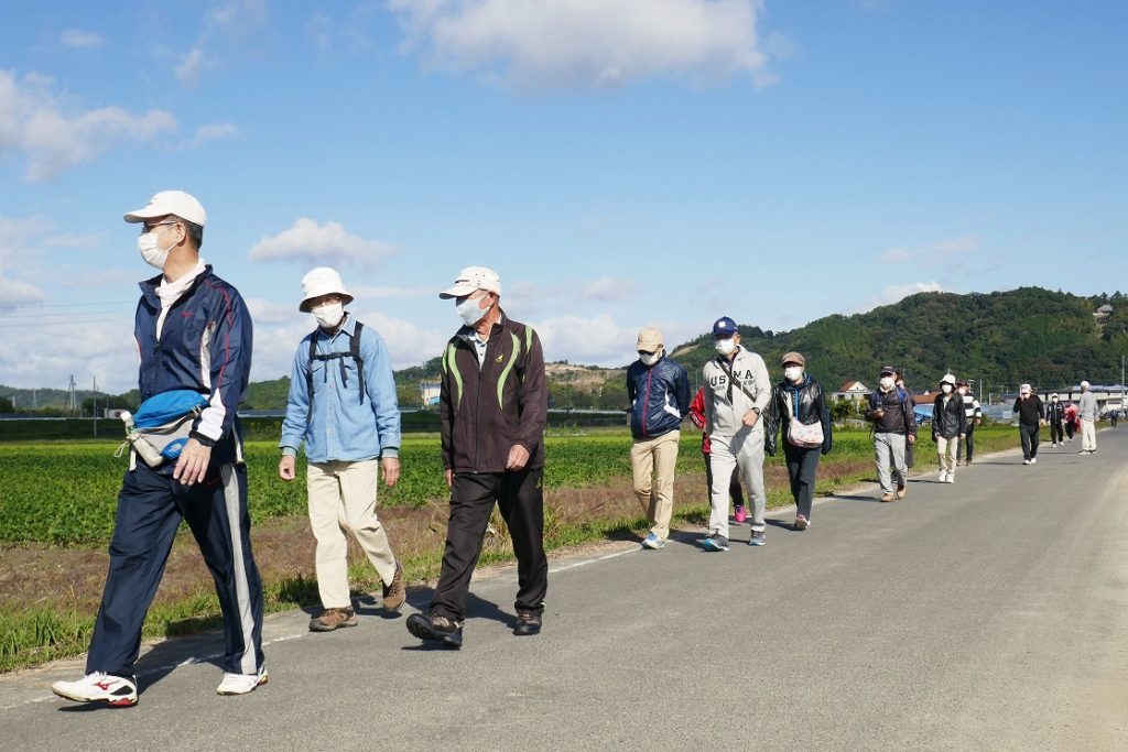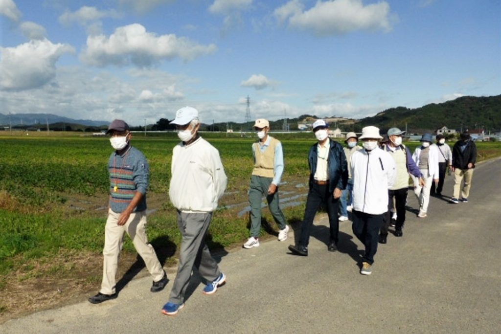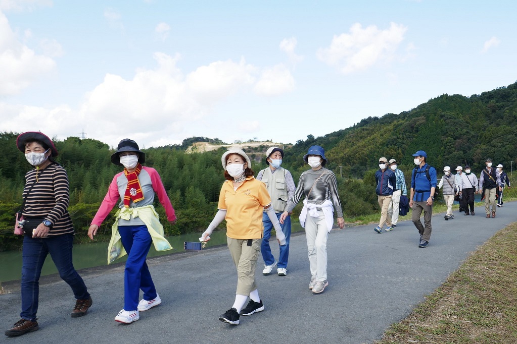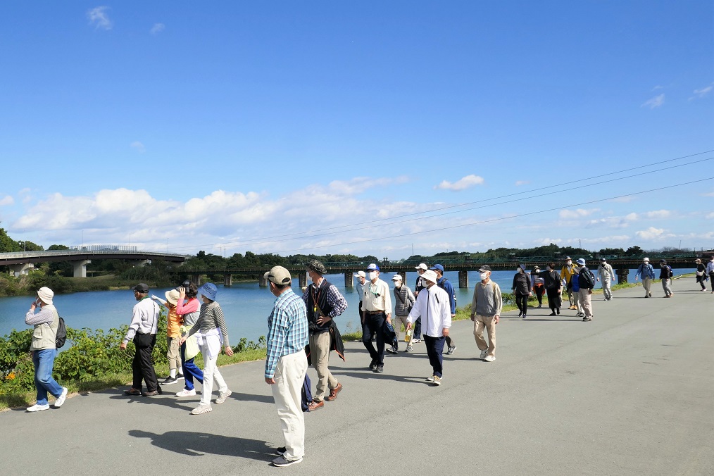 佐奈川桜づつみ公園の周辺ウォーキングでは、皆さん会話が弾み、