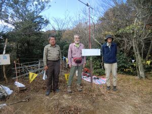 無線機、アンテナ、電源を担ぎ上げて、無線活動を行いました。