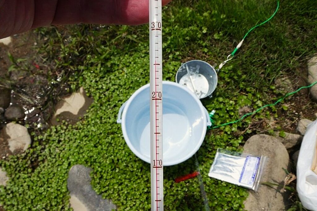 - 地点⑥-5_水を採取して測定中!