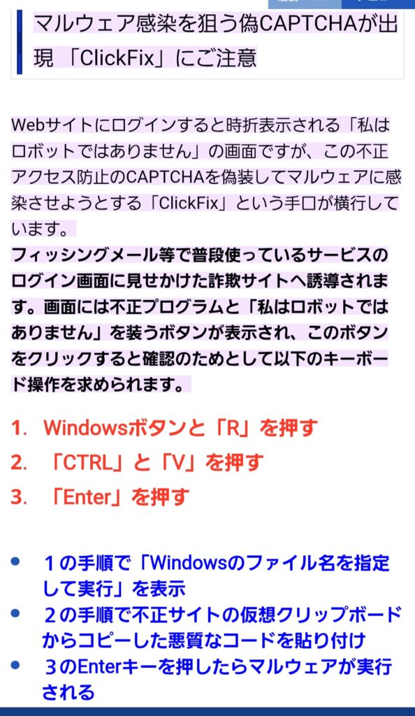 → 指示に従い、キー操作をすると、PCにウイルスを送り込まれ、PC内の重要なデータを抜き盗られます!
