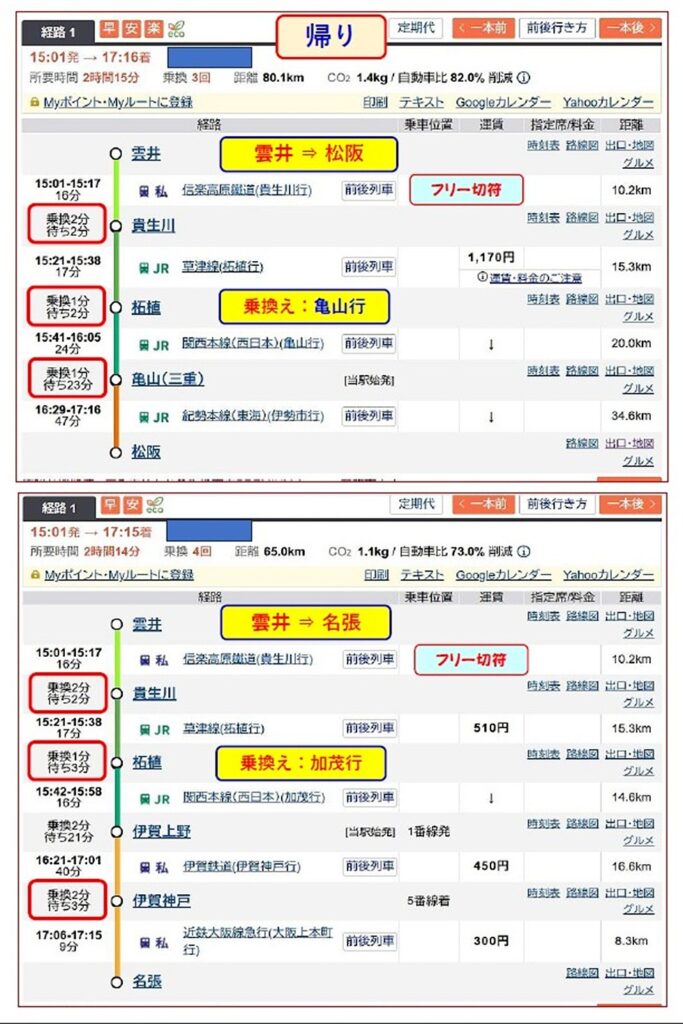 - 帰りの乗換え案内