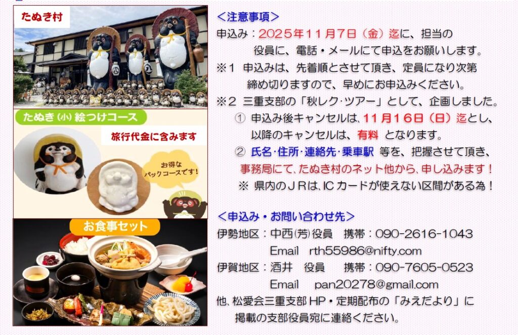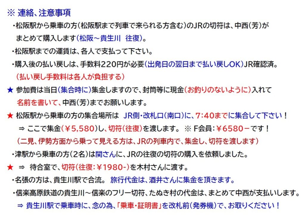 ◆ポイント-1:松阪からご参加の方は、松阪駅・JR側(南口)改札前に、7:40に、ご集合下さい!