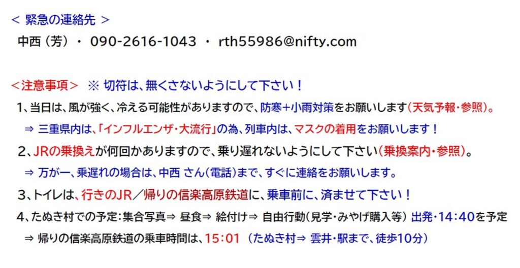 秋レク:11/25(火)に ご参加の方への お知らせ・注意事項について!