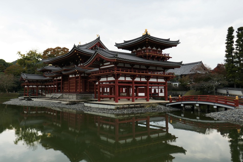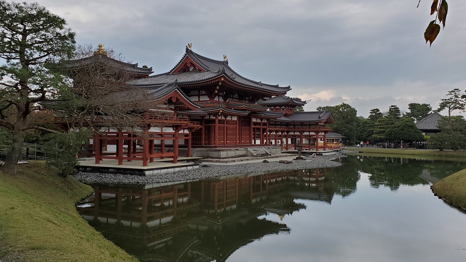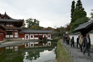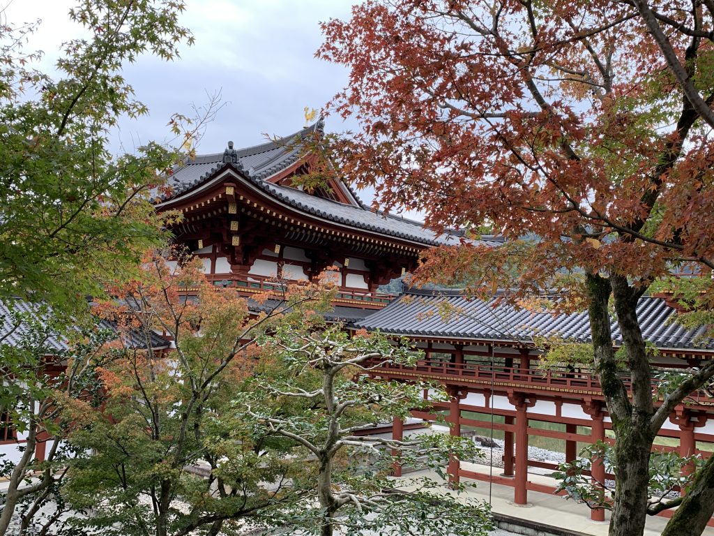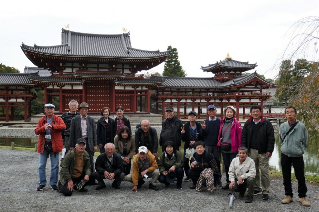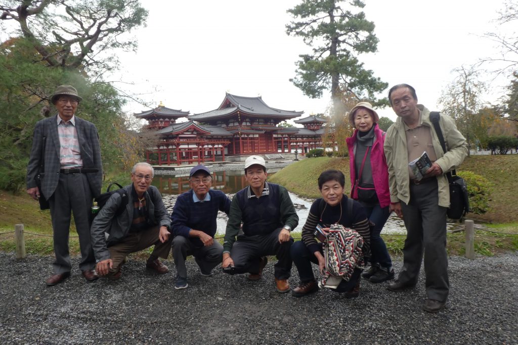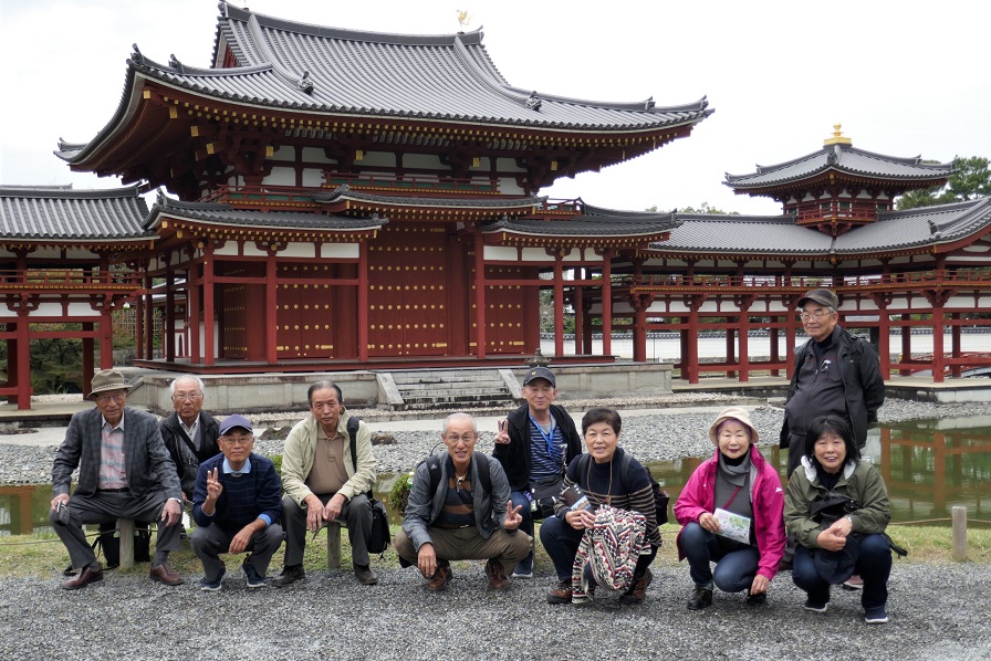 昼からは世界遺産宇治の平等院見学、池を配した庭園からの眺め、まさに極楽浄土の世界でした。