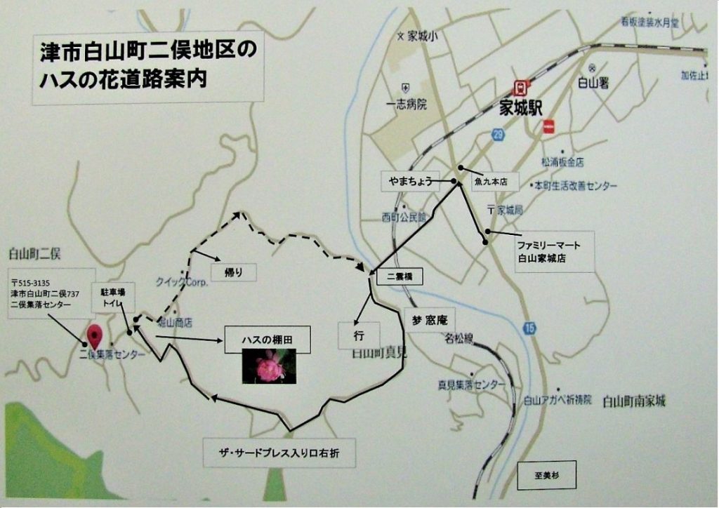 そこで、蓮祭り中止のお知らせHP:現地までの案内図:みえだより・初夏号の掲載記事を参考にしてください。