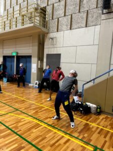- 02)大野さん(手前)、萩野さん(2番目)も準備運動