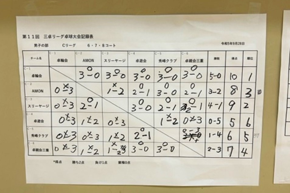 - ⑳卓親会三重・結果~2勝3敗(4位)・・・成績表の最下段