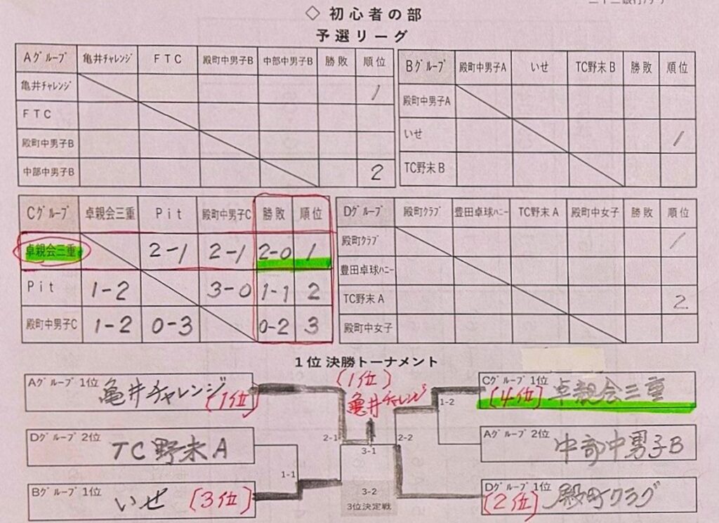 出場者:倉本さん、荻原さん、丸井さん、中嶋の4人【対外でのチーム名 ⇒ 卓親会三重】