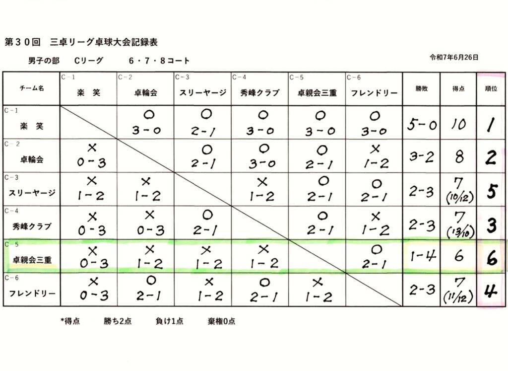 三卓リーグ(卓球大会)参戦~ 今回は 6位 (最下位)でした!