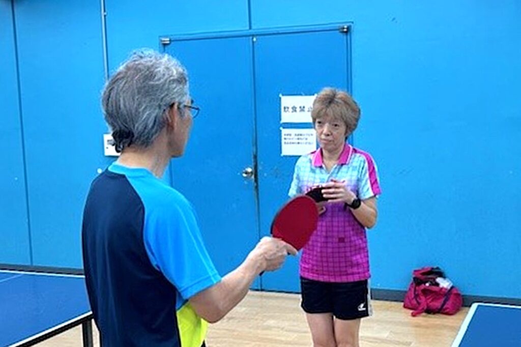 ・卓球経験者のMTさんご夫婦、対外試合経験者のNMさん、ANさん、卓球を始めて数年のHSさん、TYさん、ほぼ初心者のMRさん多彩です。