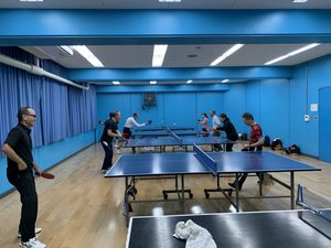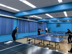 皆さん和気あいあいと白球を打ち返し、たまに空振りも有りです。