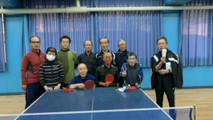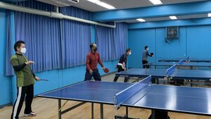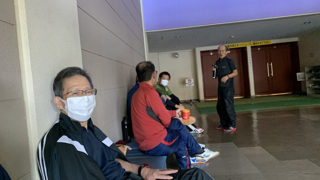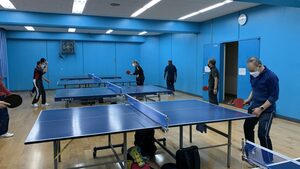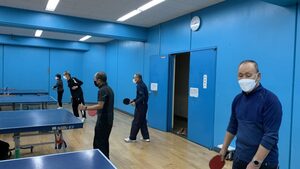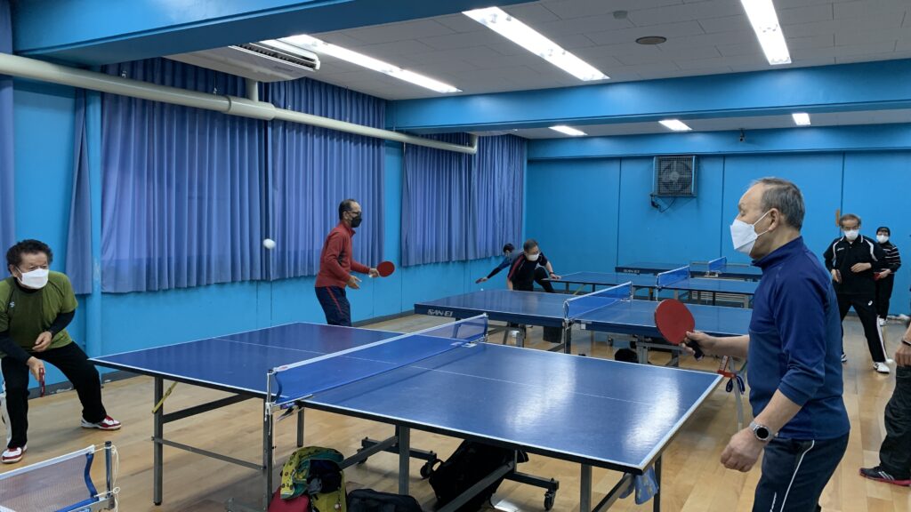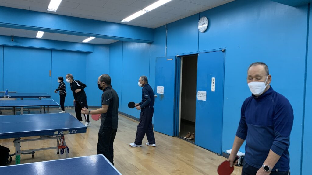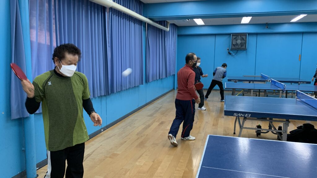 皆さん半袖、汗をかきピン球を打ち返し たまにはスマッシュも・・・とれません・・・