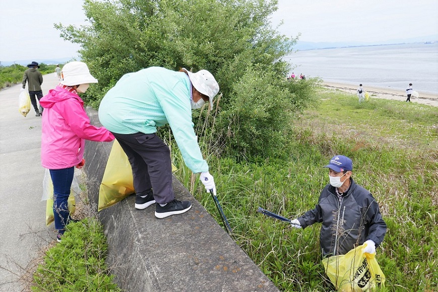 長雨後の久々の晴れ間の海岸清掃となりました。