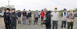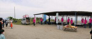 主催者の挨拶の後、100名程の子供を含むボラ団体一同は、火ばさみと2種の分別ゴミ袋を手にゴミ収集開始。