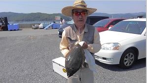 特大の最高級魚のヒラメを釣り上げました。