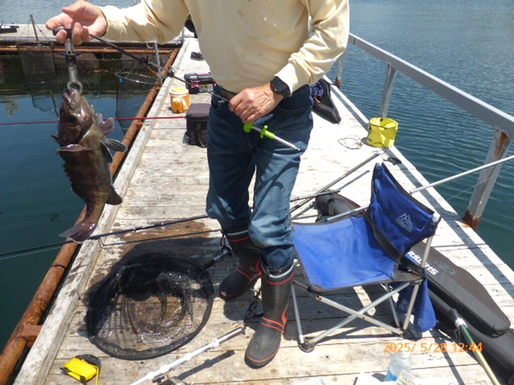 おまけに引き上げてみると、クエの口には筆者の釣り針の他に、もう一本の釣り針が!