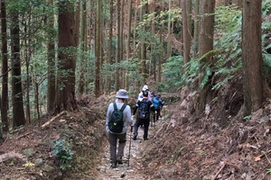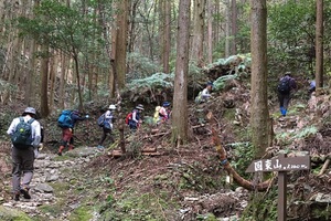 『弘法石』の登山口に向い、ここから本格的な山道を13町(約1.4km)登り、