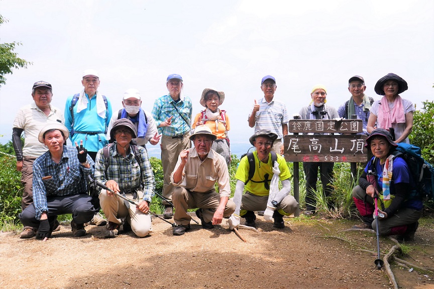 今回は、北勢の2山(尾高山-菰野富士)に挑戦の予定でしたが、当日の蒸し暑さによる熱中症を警戒して、1山(尾高山)だけの山歩きとなりました。