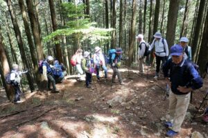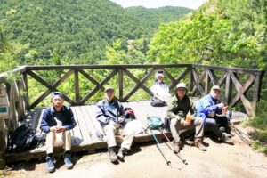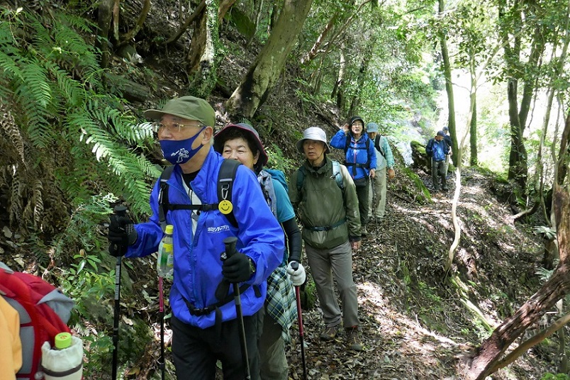 前夜の天気予報の『雨のち晴れ』を信じ、強風は覚悟して実施。通常の山登りは、山頂を目指して登って下山するパターンですが、今回は、山頂からスタートし、約400m下の布引の滝に向い、そこから登って、山頂に向かう計画としました。が、初めての試みに、ペース配分が分からず?。後半の登りに余力を残す安全策で、全員、無事に、山頂に戻ることができました。昼食場所の「滝見台」は、強風でしたが、10時過ぎからは晴れてきて、強風薫る5月の「渓谷のハイキング」ができました。本日、ご参加の皆様、初めての試みに、大変お疲れ様でした。